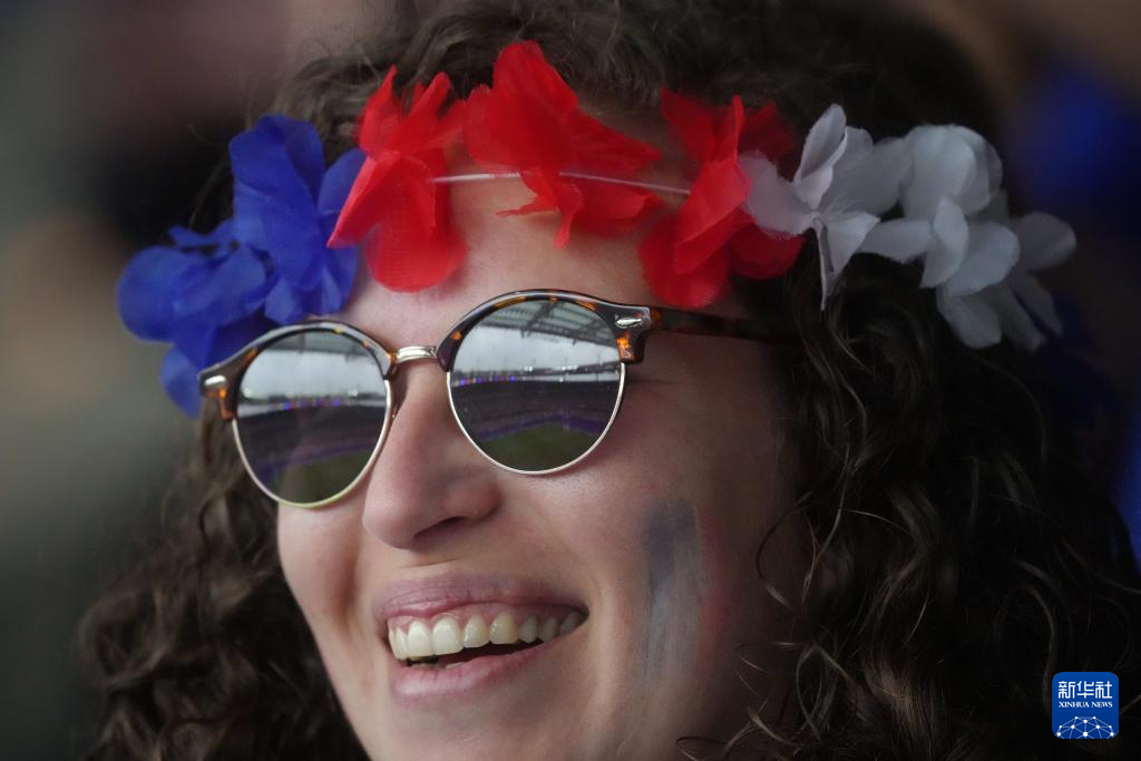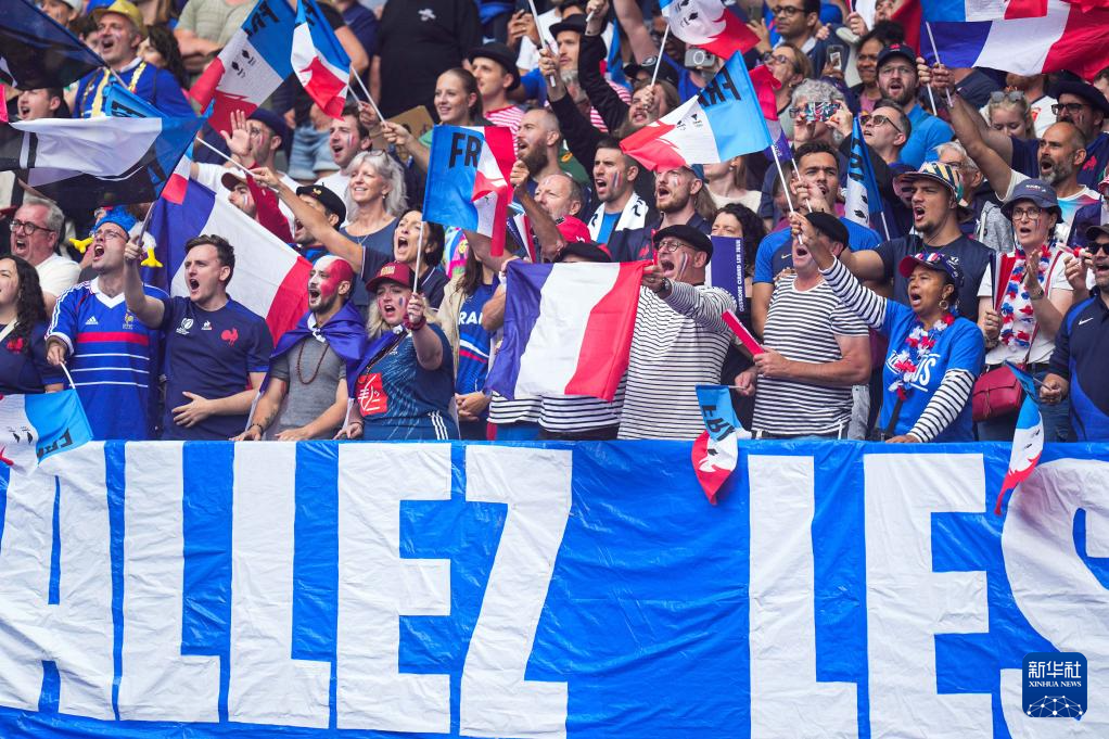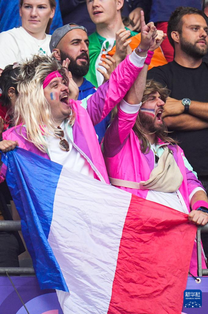 7月27日,观众在比赛中为法国队助威。新华社记者 许畅 摄