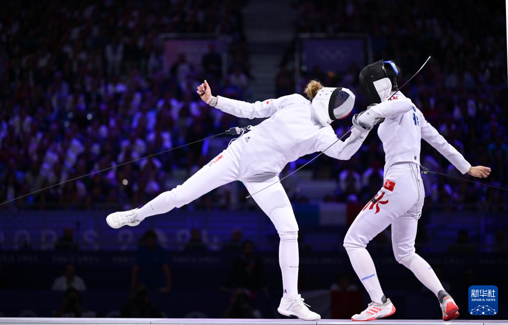 当日,在巴黎奥运会击剑女子个人重剑金牌赛中,中国香港选手江旻憓13比12战胜法国选手马洛-布雷东,夺得冠军。