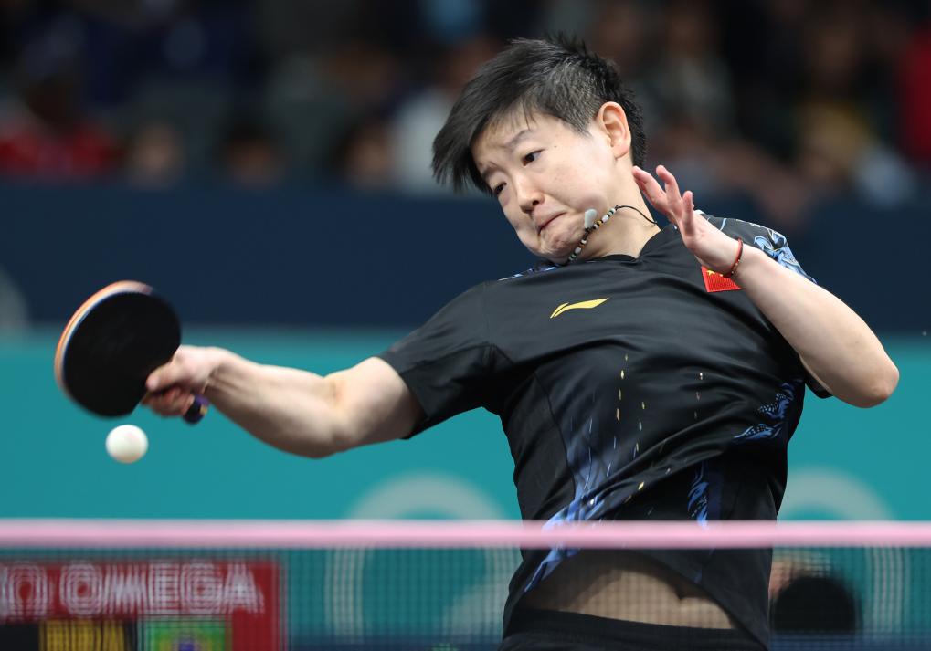 7月28日,孙颖莎在比赛中。新华社记者 王东震 摄
