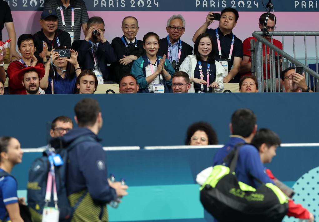 7月28日,中国乒乓球协会主席刘国梁(后排左一)在比赛现场。新华社记者 王东震 摄