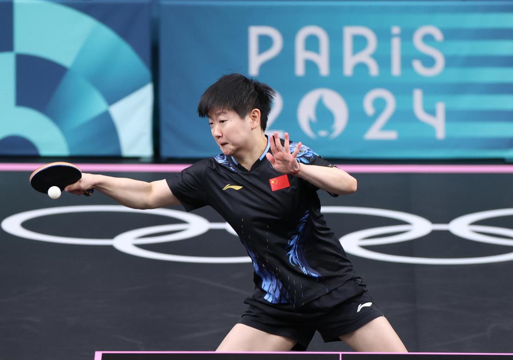 7月28日,孙颖莎在比赛中。新华社记者 刘续 摄