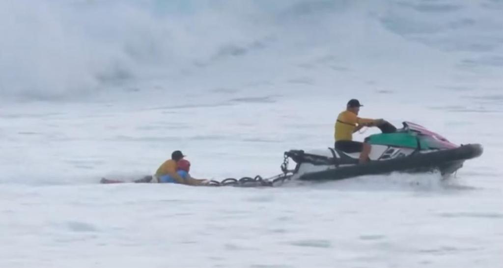 救生员将杨思琪拉出浪区