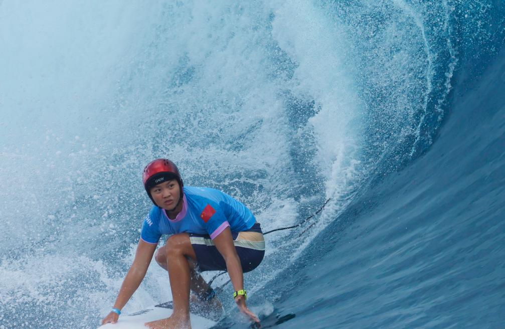 新华社塔希提7月27日电(记者林昊)巴黎奥运会冲浪项目27日展开首轮比赛。塔希提提阿胡普的细雨中,中国选手杨思琪面对镜头微笑着指了指衣袖上的五星红旗,双手比出了“1”的手势。随后,她在同组两名对手之前率先入水,中国冲浪迎来了在奥运会的首秀。