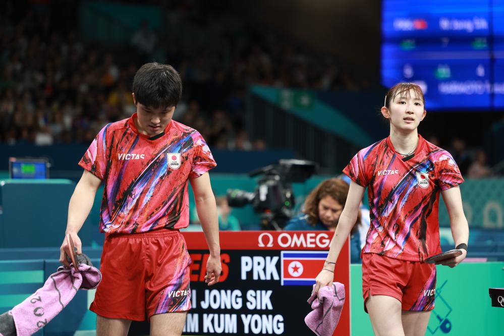 张本智和/早田希娜的比赛同时进行,他们的对手是“神秘之师”朝鲜组合李正植/金琴英。最终,朝鲜组合以五局比分11:5、7:11、11:4、15:13、12:10,大比分4:1击败二号种子,挺进八强。