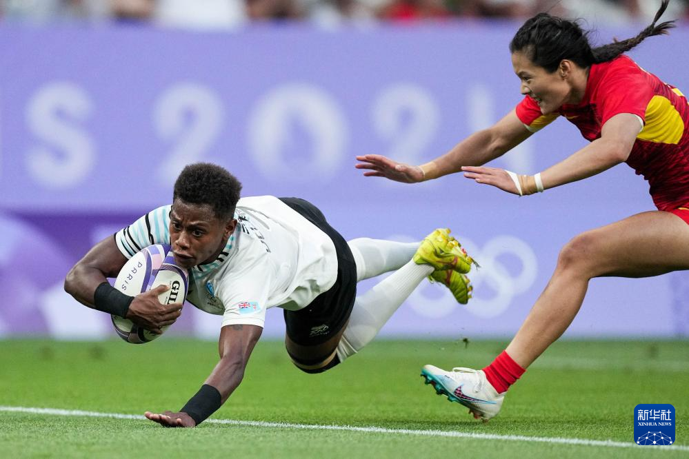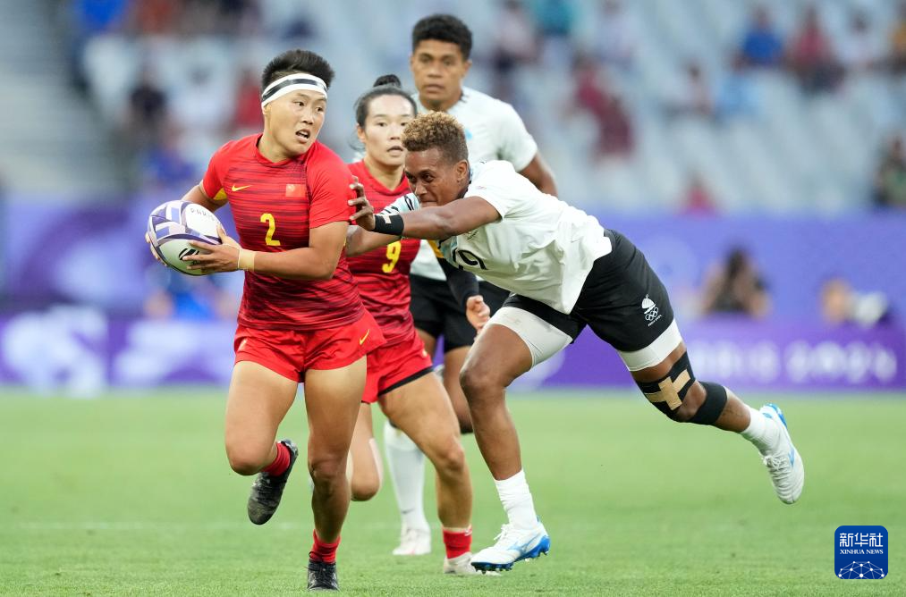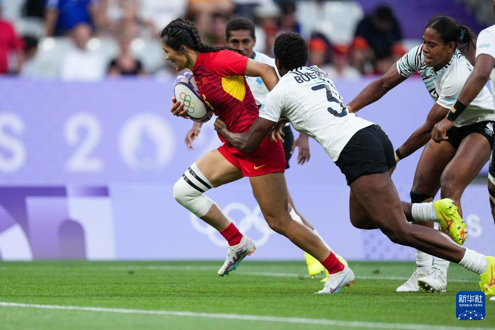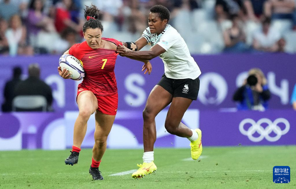 当日,在巴黎奥运会七人制橄榄球女子分组循环赛A组比赛中,中国队40比12战胜斐济队。