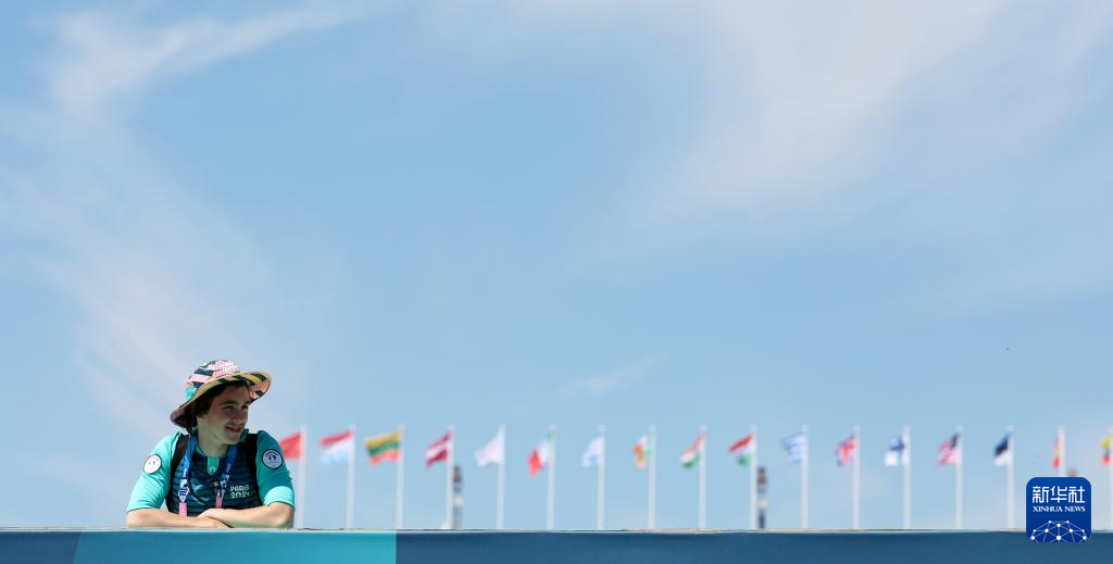 7月28日,一名工作人员在三项赛越野赛现场。新华社记者 李颖 摄