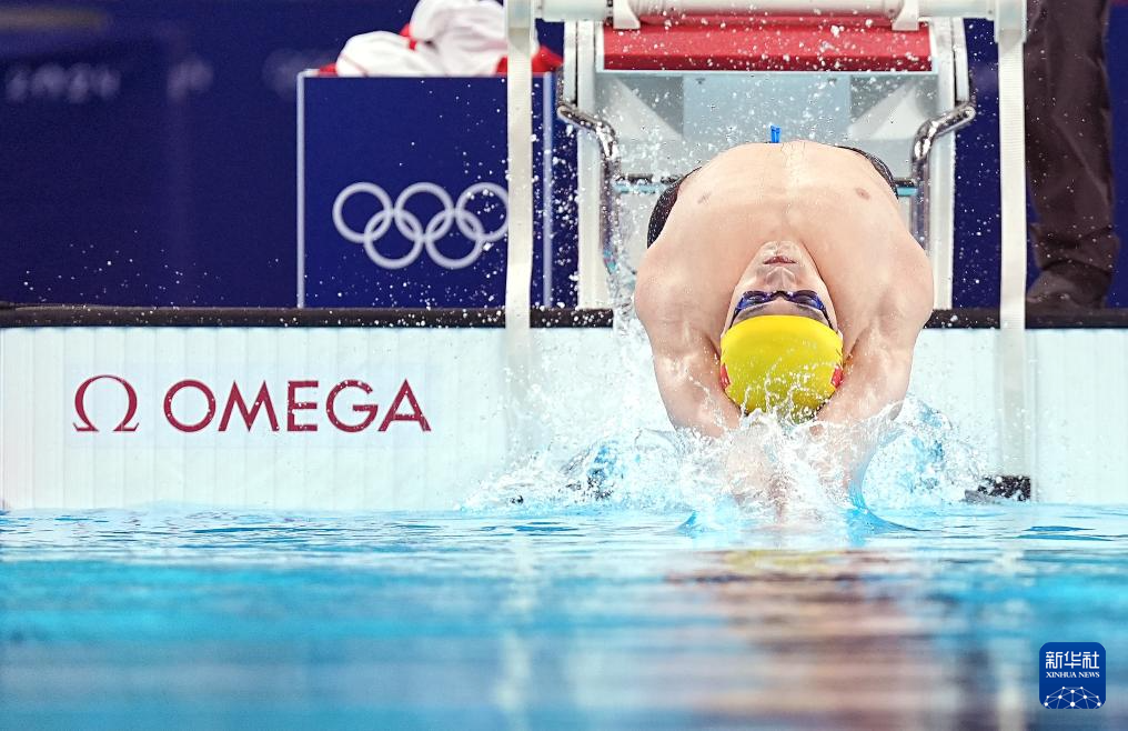 当日,巴黎奥运会游泳男子100米仰泳半决赛在拉德芳斯体育馆举行。