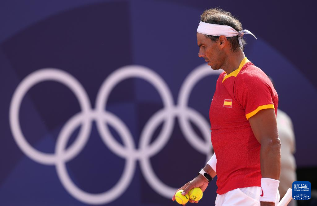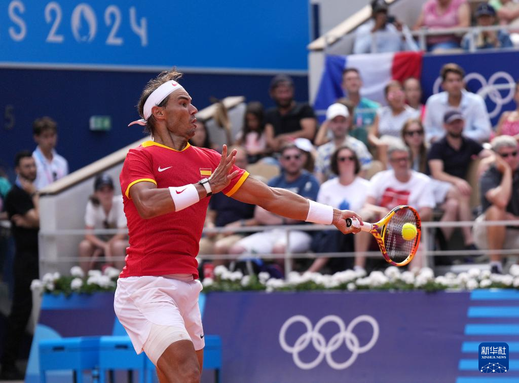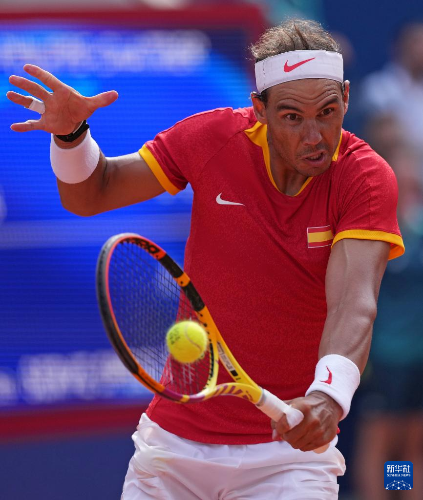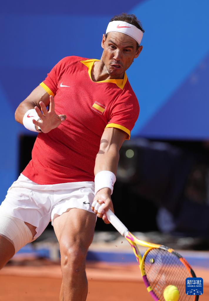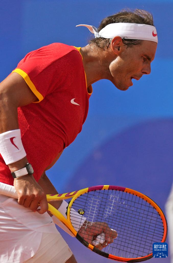 7月28日,西班牙选手纳达尔在比赛中。新华社记者 万象 摄