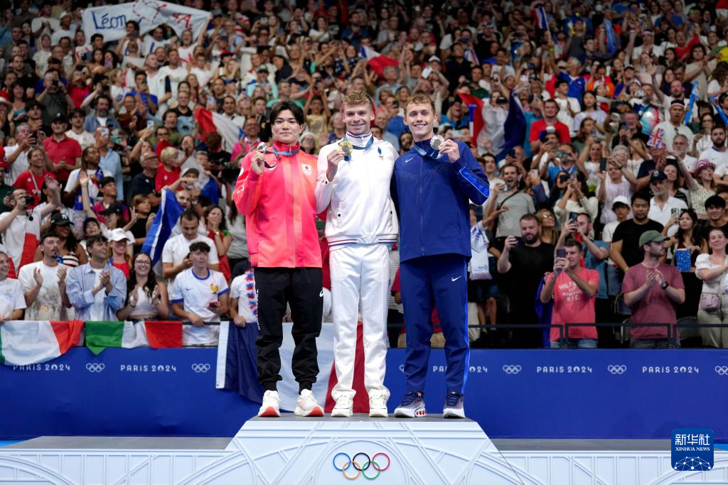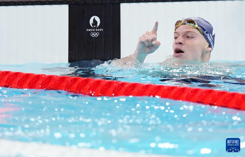 当日,巴黎奥运会游泳男子400米个人混合泳决赛在拉德芳斯体育馆举行。