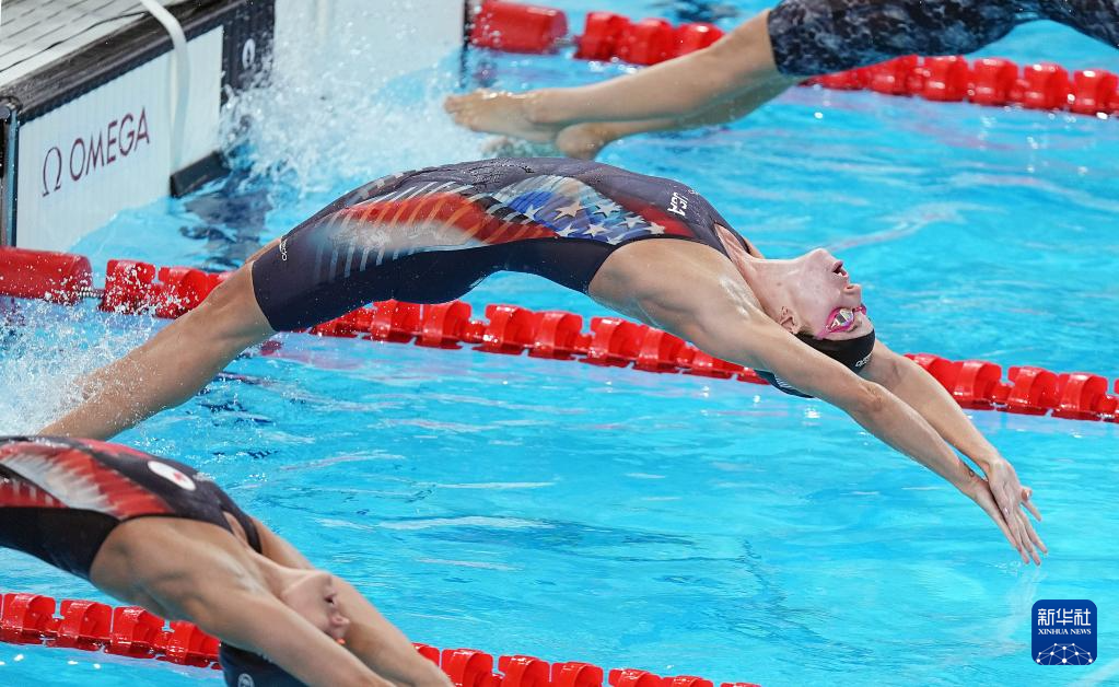 当日,巴黎奥运会游泳女子100米仰泳半决赛在拉德芳斯体育馆举行。