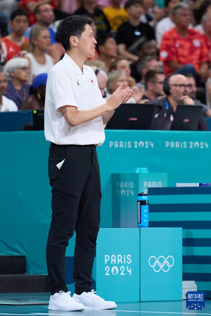 7月29日,日本队主教练恩塚亨在场边观赛。