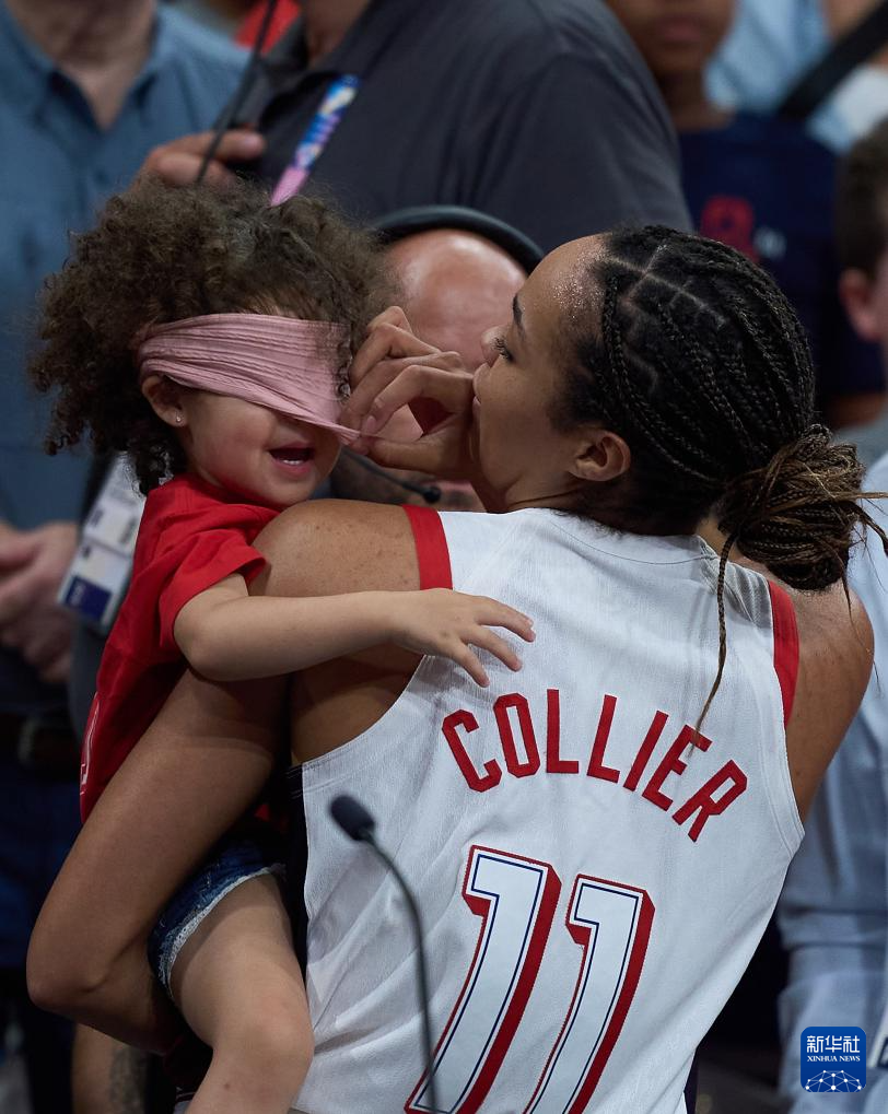 7月29日,美国队球员科利尔在比赛后与女儿庆祝。