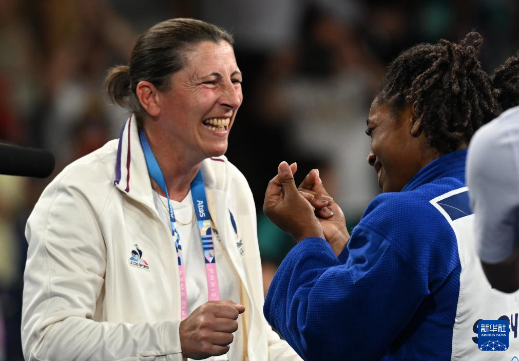 7月29日,法国选手西西克(右)在获胜后与教练庆祝。