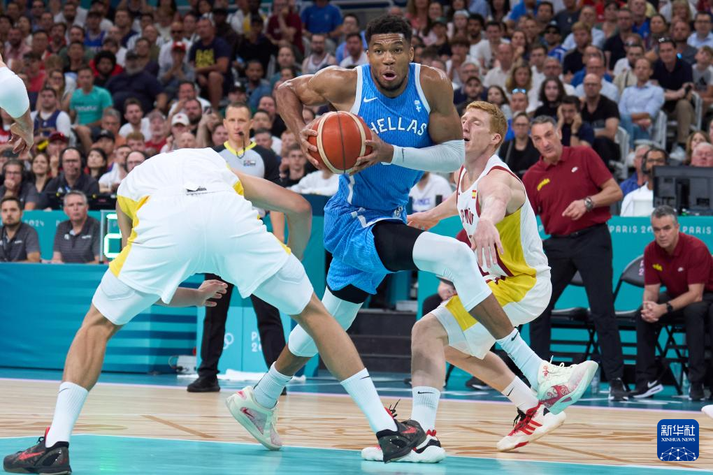 7月30日,希腊队球员安特托昆博在比赛中。新华社记者 孟鼎博 摄