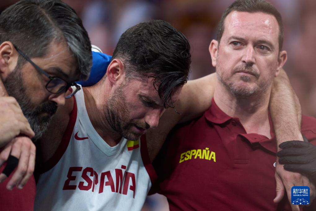 7月30日,西班牙队球员费尔南德斯在比赛中受伤离场。新华社记者 孟鼎博 摄