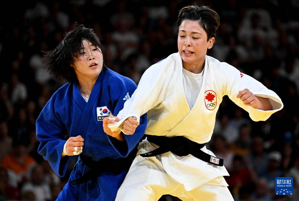当日,在巴黎奥运会柔道女子57公斤级决赛中,加拿大选手克丽斯塔·德桂战胜韩国选手许美美,夺得冠军。