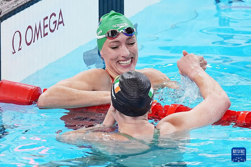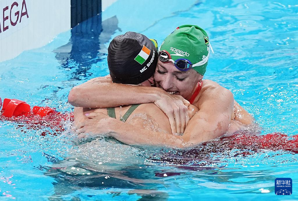 7月29日,南非选手史密斯(右)在比赛后与爱尔兰选手麦克夏瑞拥抱。史密斯获得冠军。