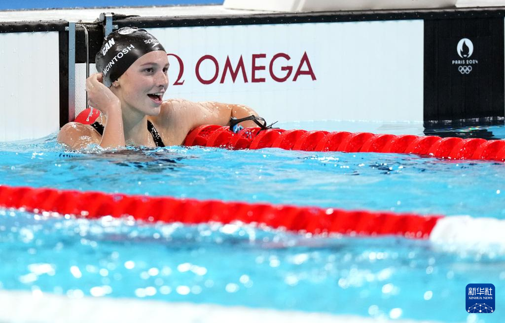 7月29日,加拿大选手麦金托什在比赛后。她以4分27秒71的成绩获得冠军。