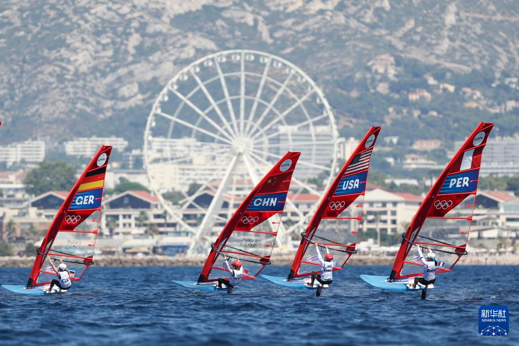 当日,2024年巴黎奥运会帆船项目女子水翼帆板iQFOil级开赛。因竞赛场地风力不足,当日女子水翼帆板iQFOil级的公开系列赛仅进行了两轮,英国选手威尔逊暂时领先,中国选手闫铮暂列第八。