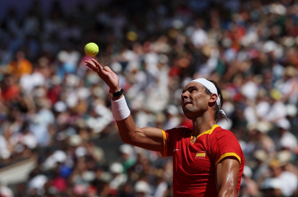 7月29日,纳达尔在比赛中发球。新华社记者 高静 摄
