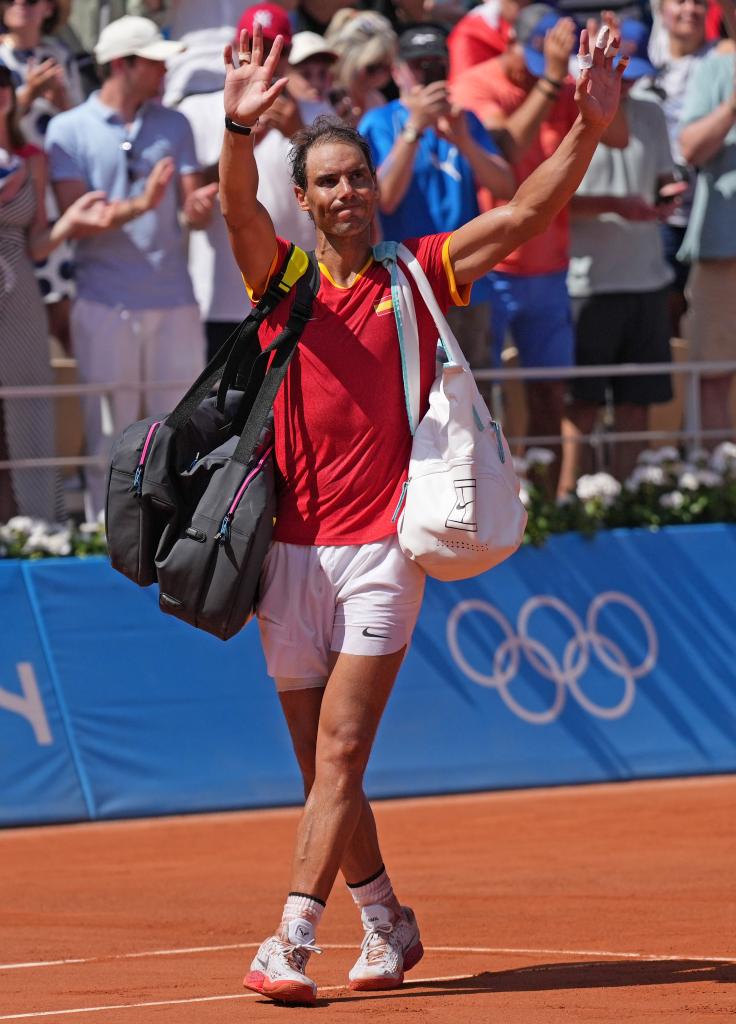 7月29日,纳达尔在赛后向观众致意。新华社记者 万象 摄