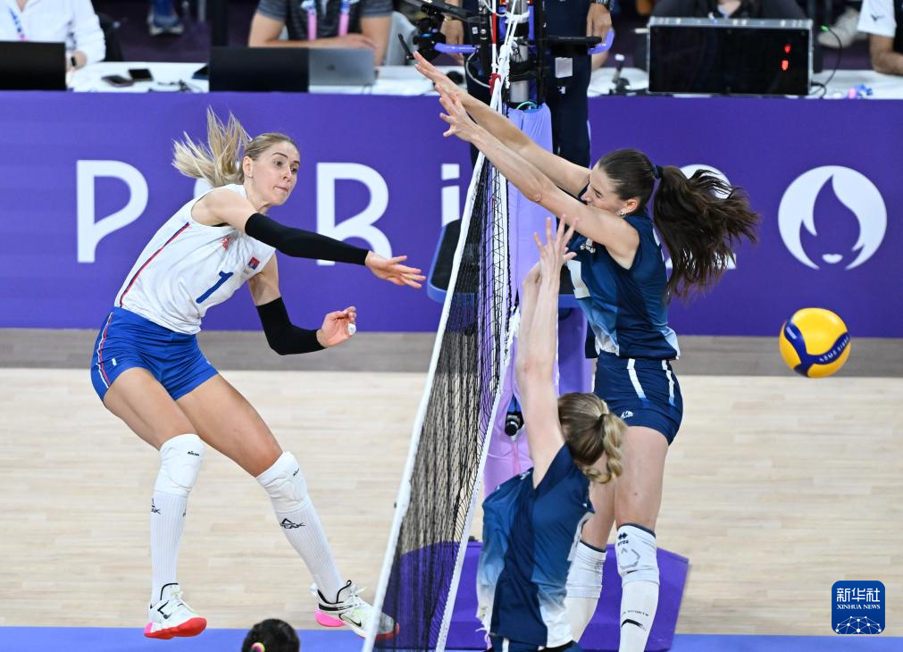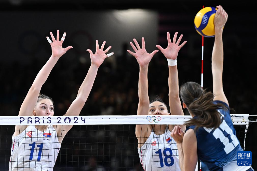 当日,在巴黎奥运会排球女子小组赛A组比赛中,塞尔维亚队3比0战胜法国队。
