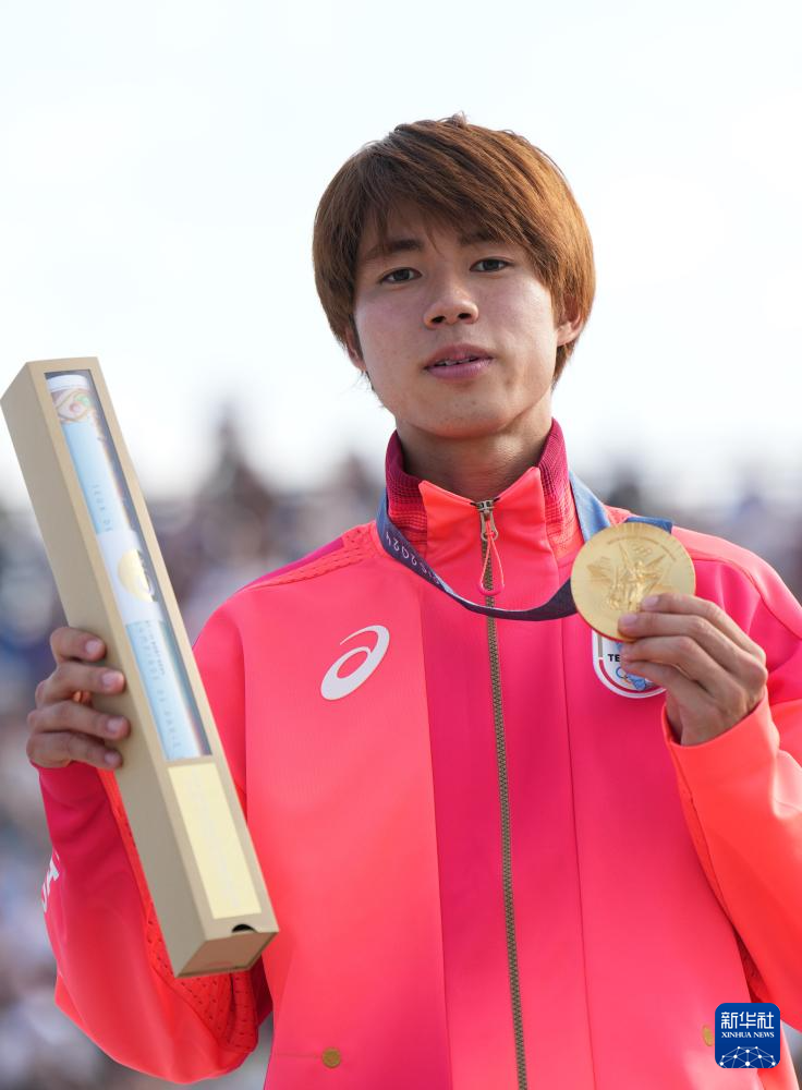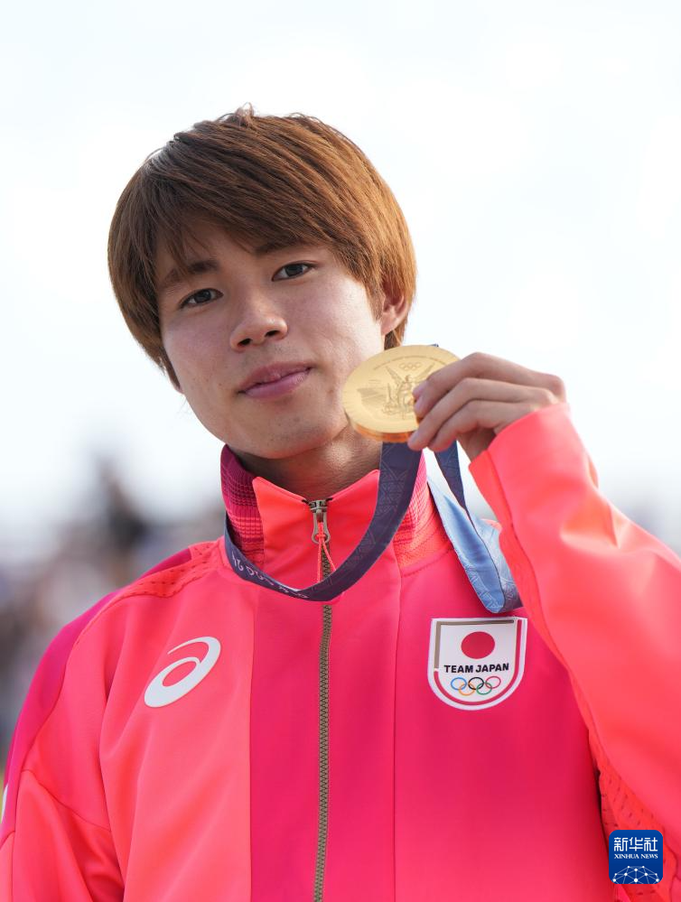 7月29日,冠军日本选手堀米雄斗在颁奖仪式上。