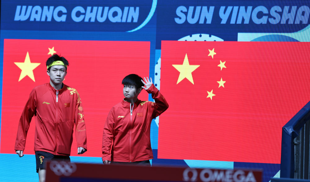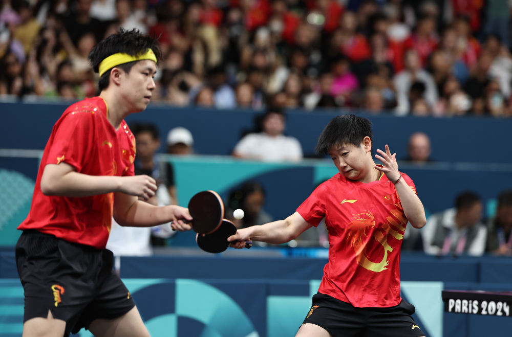 7月30日,在巴黎奥运会乒乓球混双决赛中,中国组合王楚钦/孙颖莎战胜朝鲜组合李正植/金琴英,获得冠军。