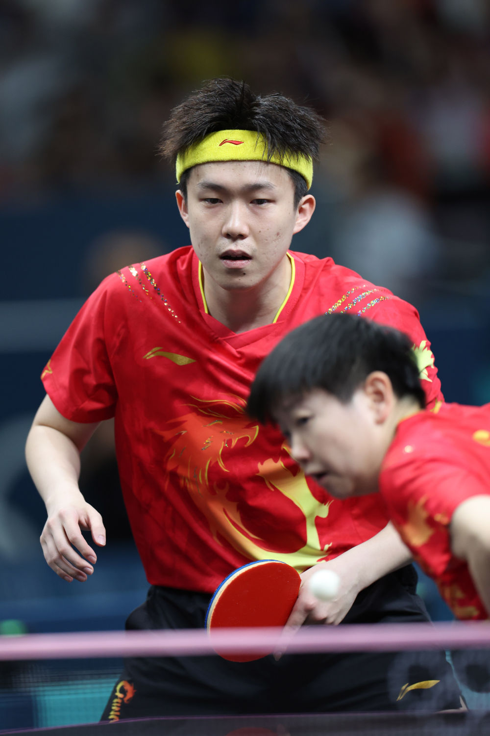 ↑王楚钦(左)/孙颖莎在比赛中。