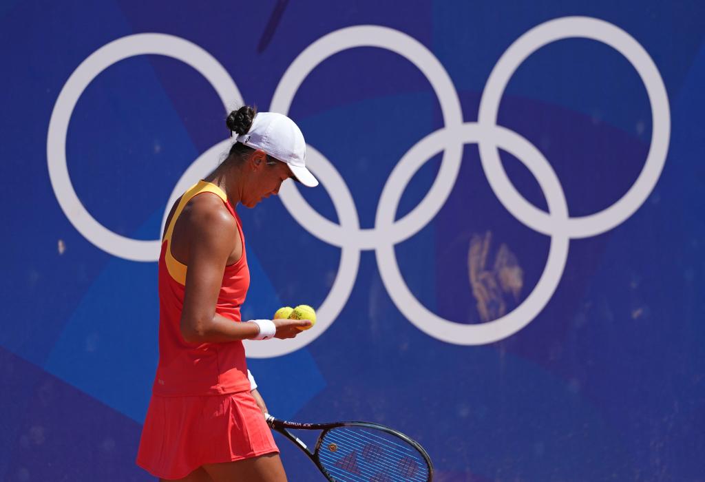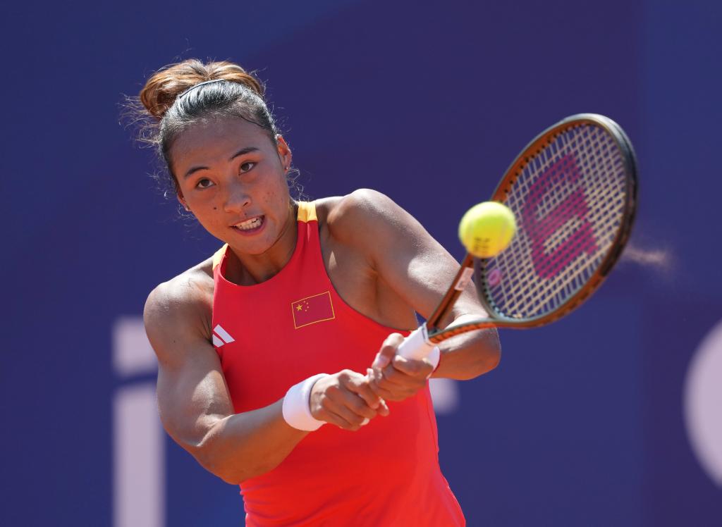 7月29日,郑钦文在比赛中回球。 新华社记者 万象 摄