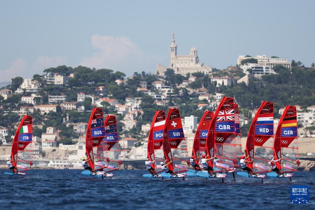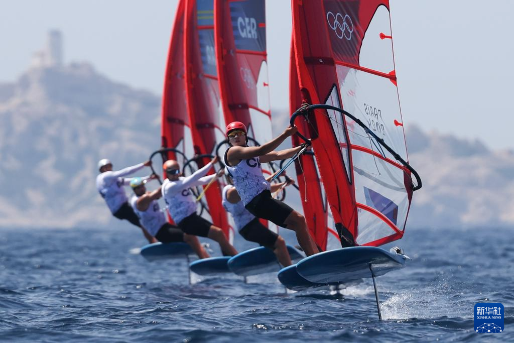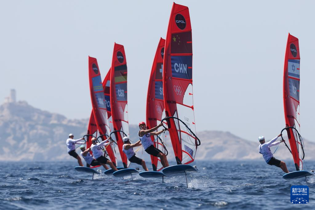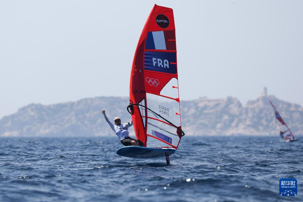 当日,2024年巴黎奥运会帆船项目男子水翼帆板iQFOil级开赛。因竞赛场地风力不足,当日男子水翼帆板iQFOil级的公开系列赛仅进行了一轮,法国选手戈亚尔暂时领先,中国选手黄敬业位列第七。