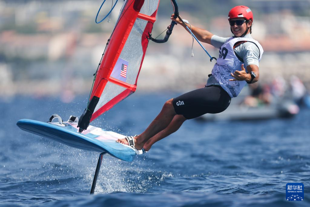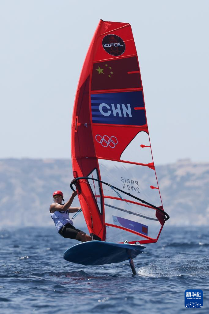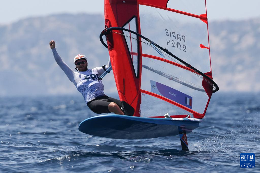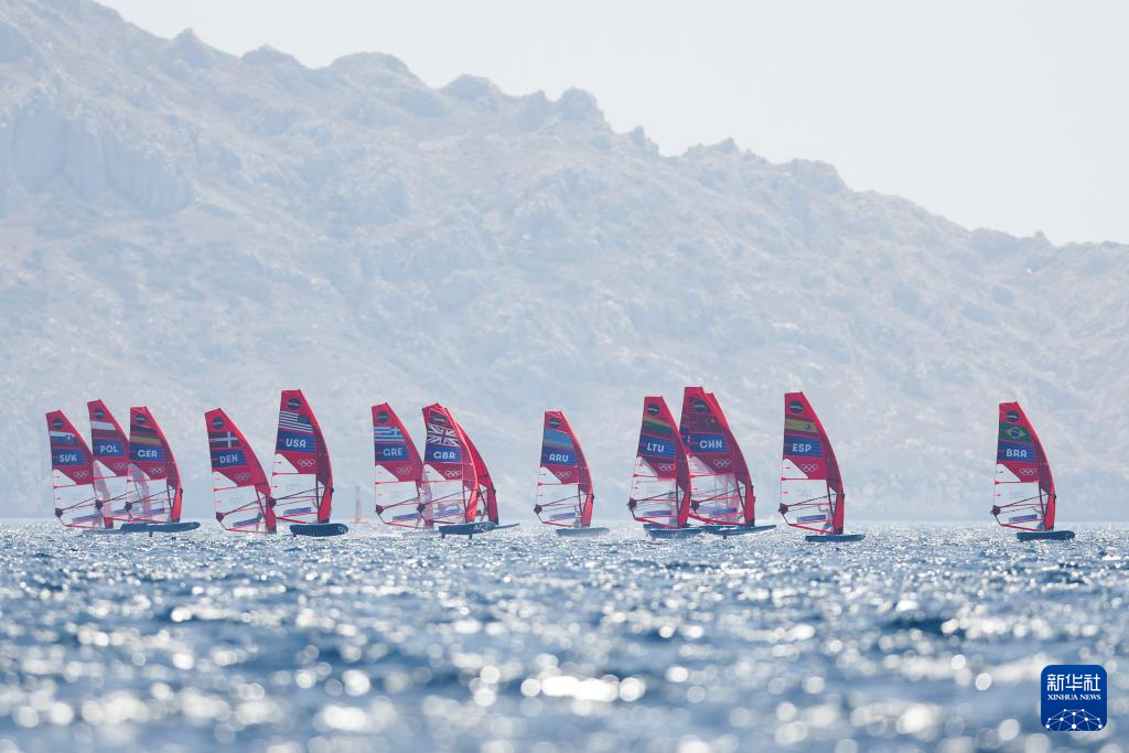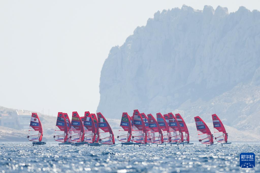 当日,2024年巴黎奥运会帆船项目男子水翼帆板iQFOil级开赛。因竞赛场地风力不足,当日男子水翼帆板iQFOil级的公开系列赛仅进行了一轮,法国选手戈亚尔暂时领先,中国选手黄敬业位列第七。