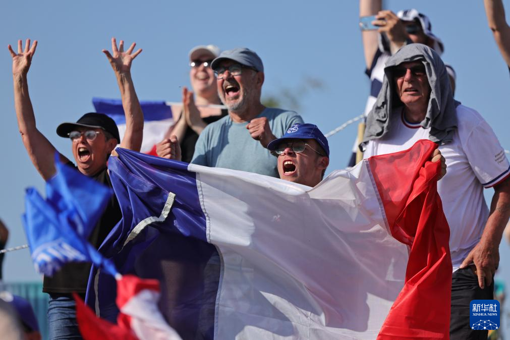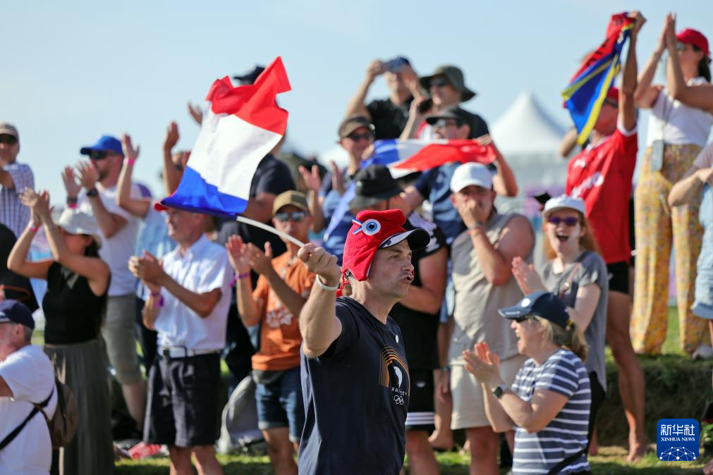 7月29日,观众庆祝法国选手尼古拉·热斯坦夺冠。