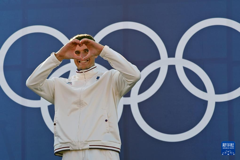 7月29日,冠军法国选手尼古拉·热斯坦在颁奖仪式上。