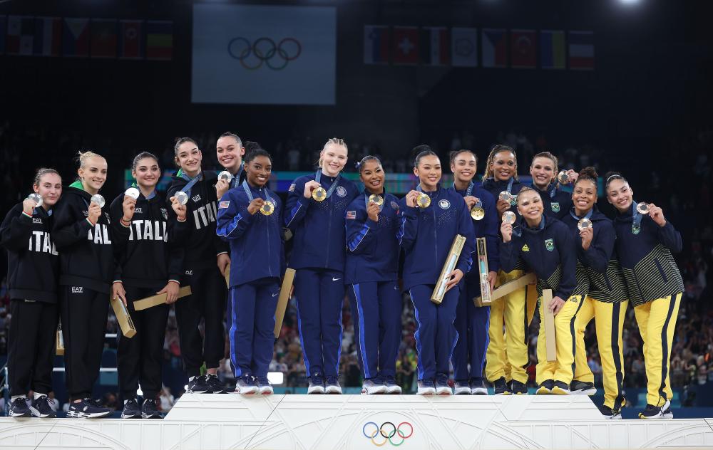 14.666分,当“体操女王”拜尔斯的自由操成绩赫然出现在贝尔西体育馆的大屏幕上时,30日进行的巴黎奥运会体操女团决赛揭晓了最终结果:美国、意大利、巴西队分获金、银、铜牌。