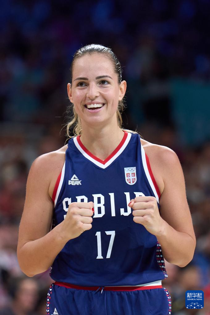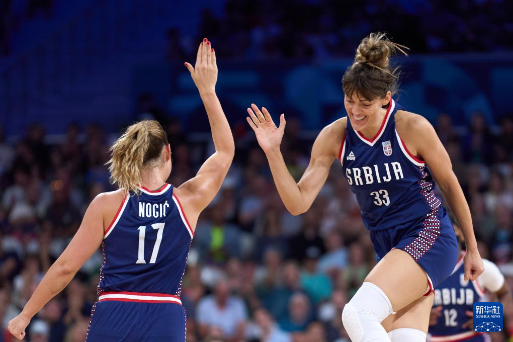 7月31日,塞尔维亚队球员诺吉奇(前右)在比赛中庆祝得分。新华社记者 孟鼎博 摄