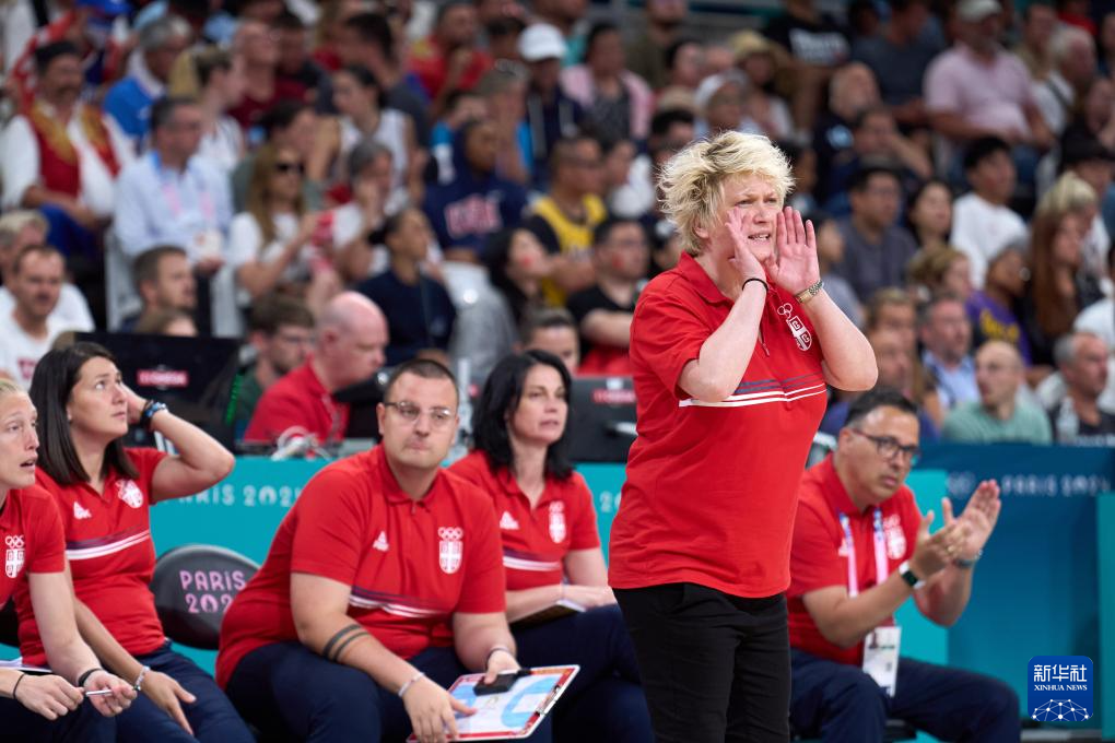 7月31日,塞尔维亚队教练马利科维奇在比赛中。新华社记者 孟鼎博 摄