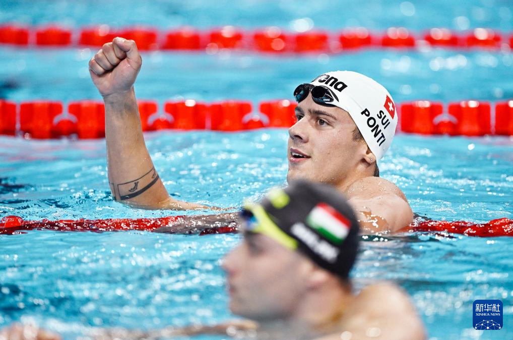 7月30日,瑞士选手蓬蒂(上)在比赛后。他以第四名的成绩晋级决赛。