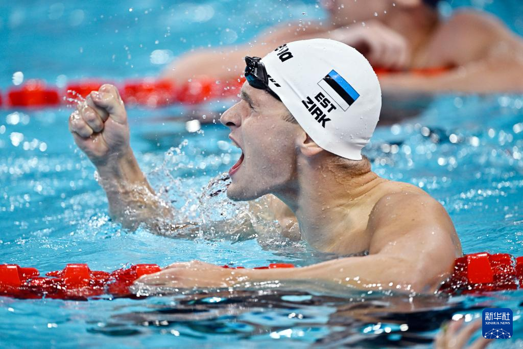 7月30日,爱沙尼亚选手齐尔克在比赛后庆祝。他以第五名的成绩晋级决赛。
