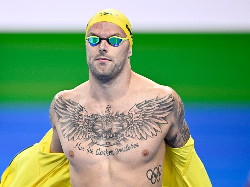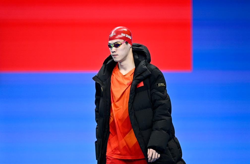 7月30日,中国选手潘展乐在比赛前。他以第一名的成绩晋级决赛。