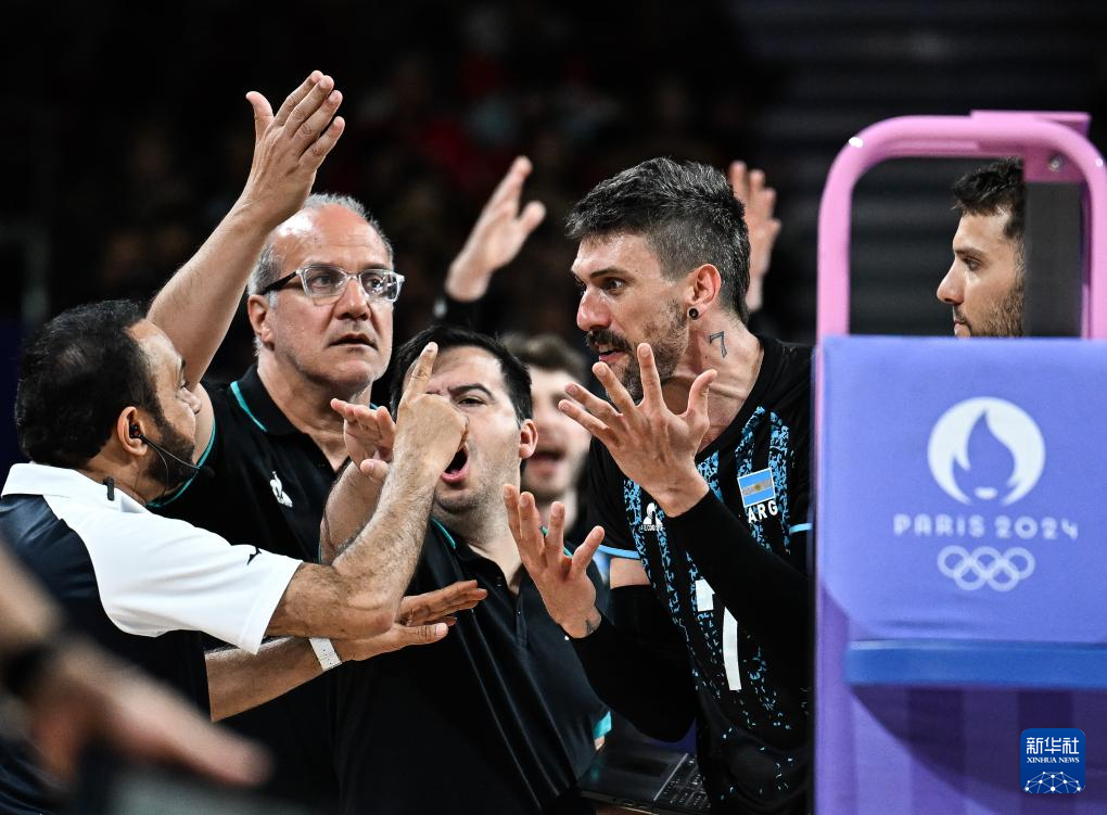 7月31日,阿根廷队教练和球员对裁判判罚产生争议。新华社记者 刘大伟 摄