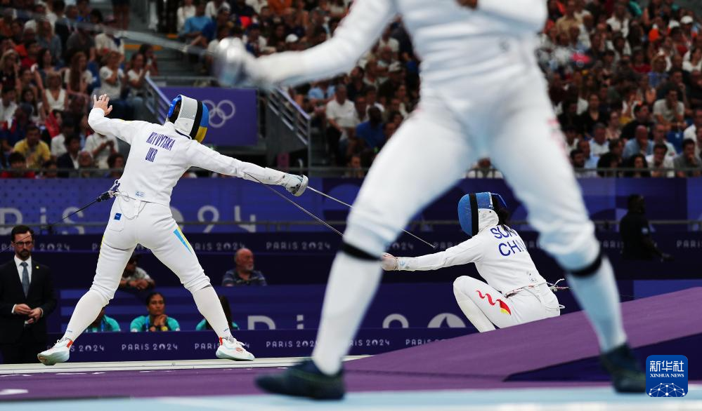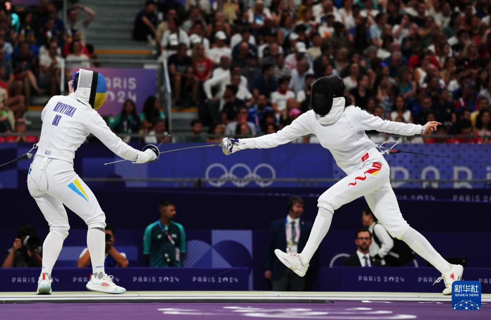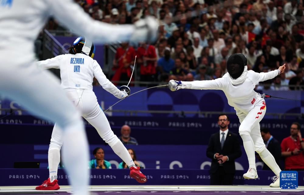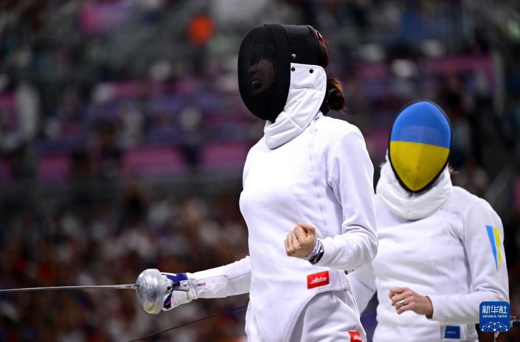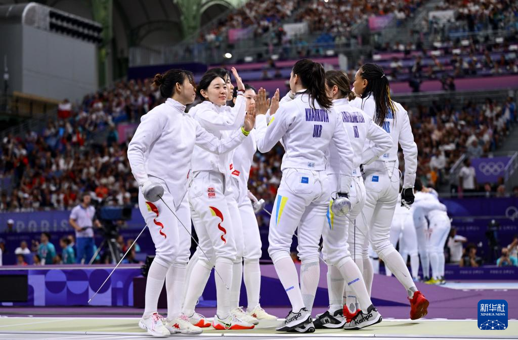 当日,巴黎奥运会击剑女子团体重剑八强赛在巴黎大皇宫举行,中国队以45比41战胜乌克兰队,晋级四强。