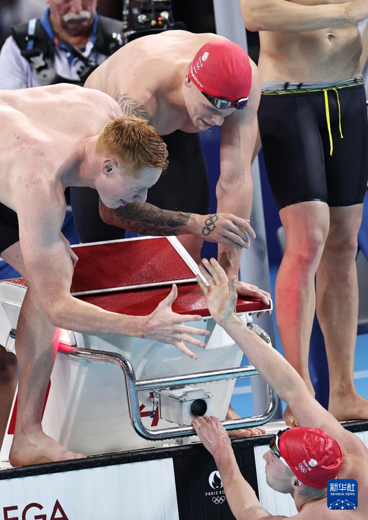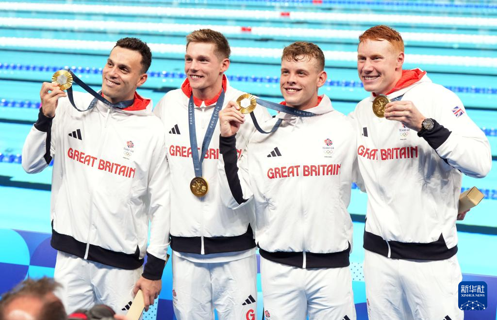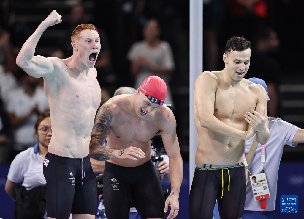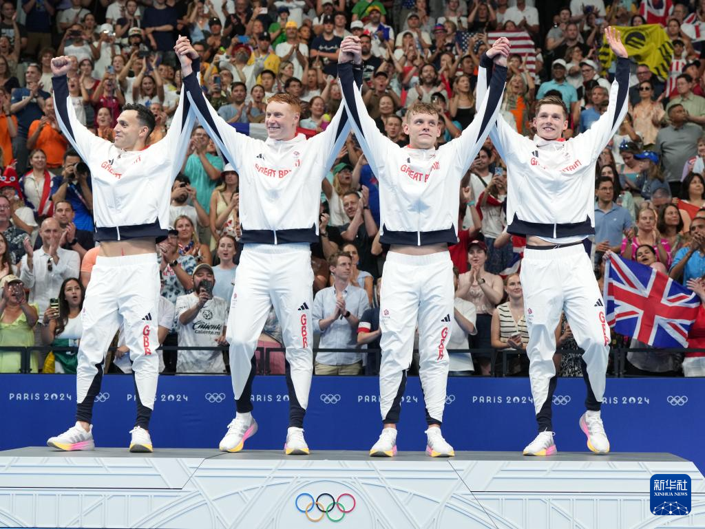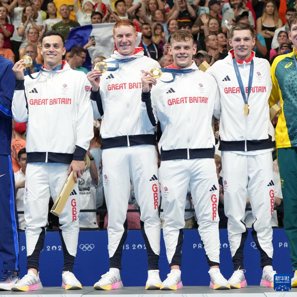 当日,巴黎奥运会游泳男子4x200米自由泳接力决赛在拉德芳斯体育馆举行,英国队夺得冠军,美国队、澳大利亚队分获亚军、季军。