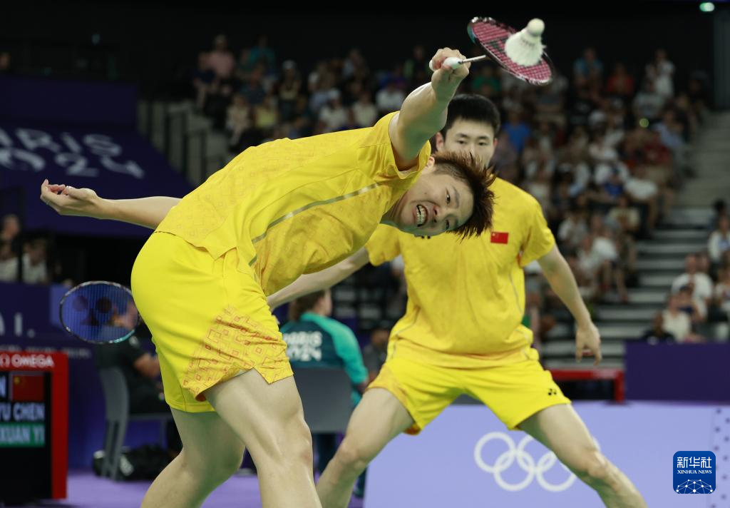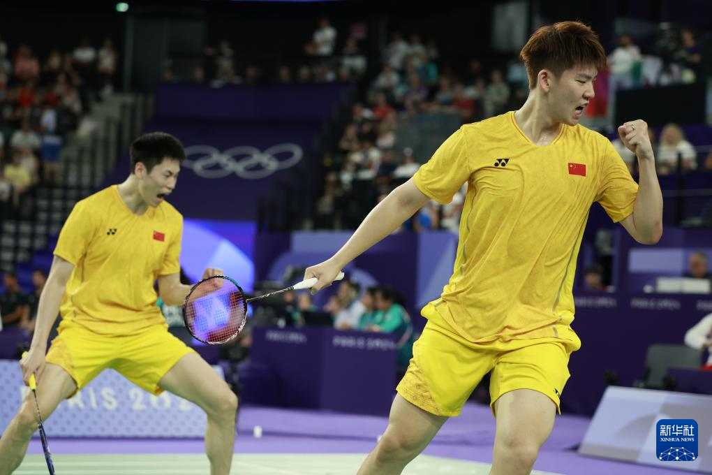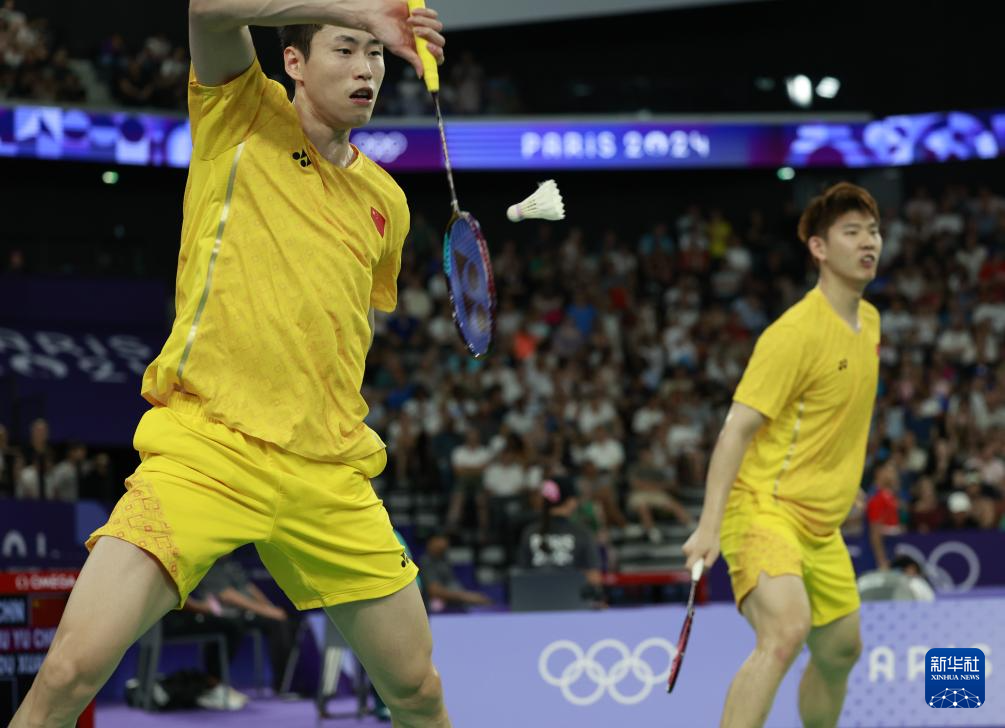当日,在巴黎奥运会羽毛球男子双打小组赛D组比赛中,中国组合刘雨辰/欧烜屹2比0战胜日本组合保木卓朗/小林优吾。