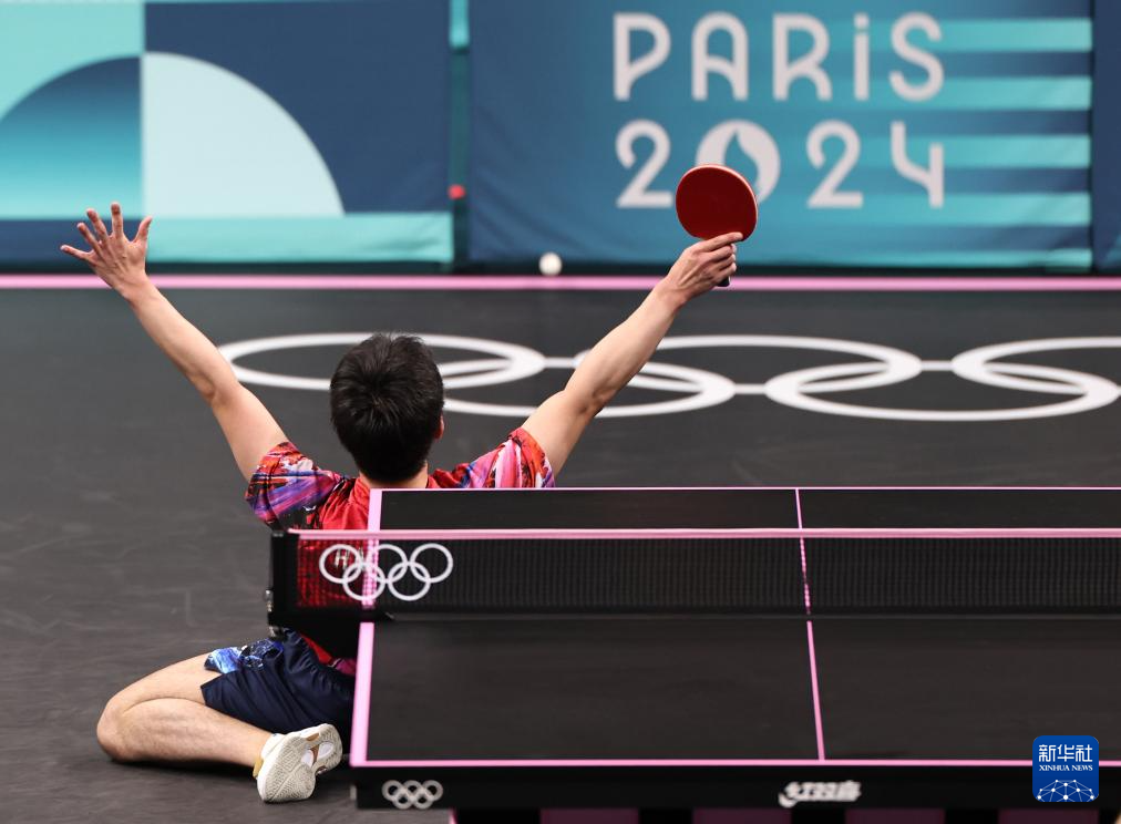 7月31日,张本智和在比赛获胜后庆祝。新华社记者 王东震 摄