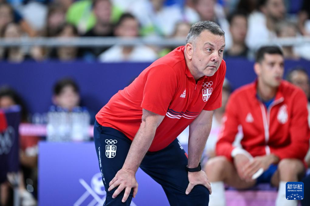 7月30日,塞尔维亚队主教练科拉科维奇在场边观战。
