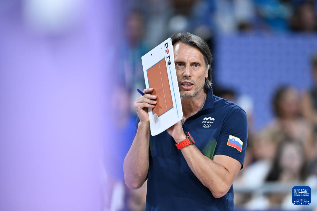 7月30日,斯洛文尼亚队主教练克雷楚在比赛中布置战术。