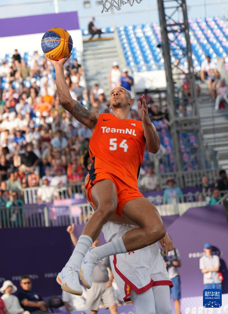 7月30日,荷兰队球员德容在比赛中上篮。