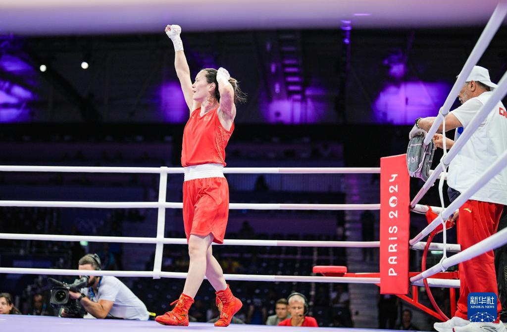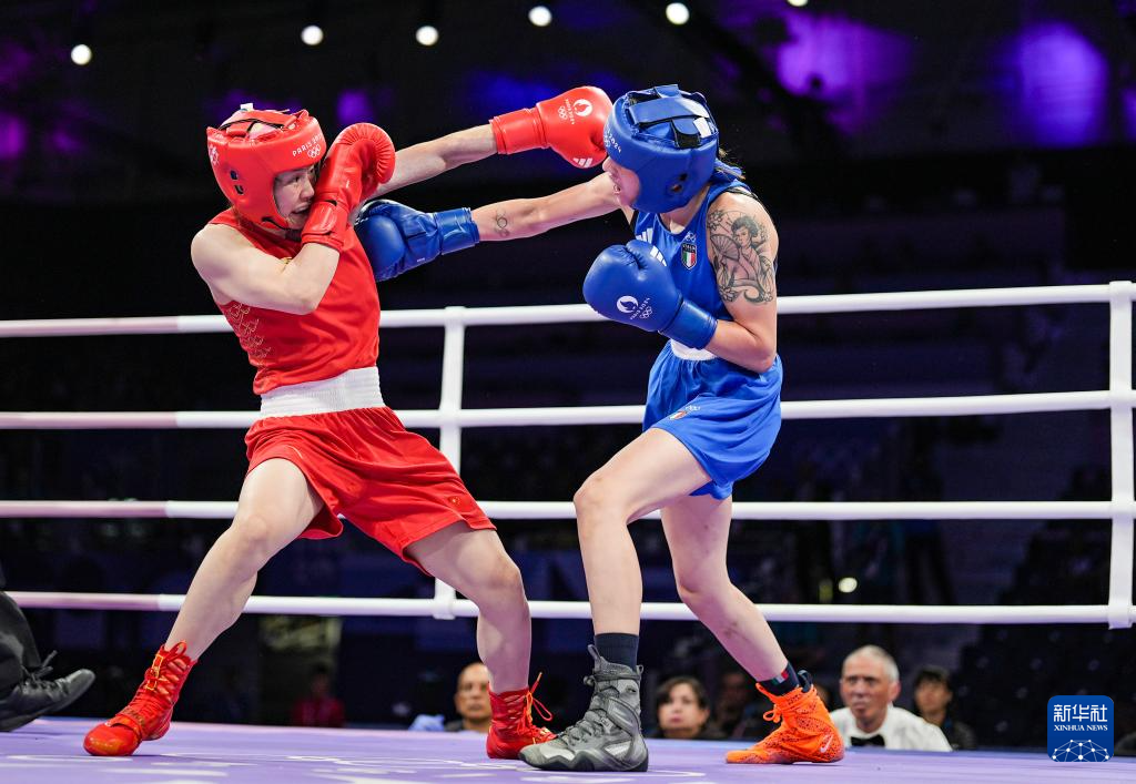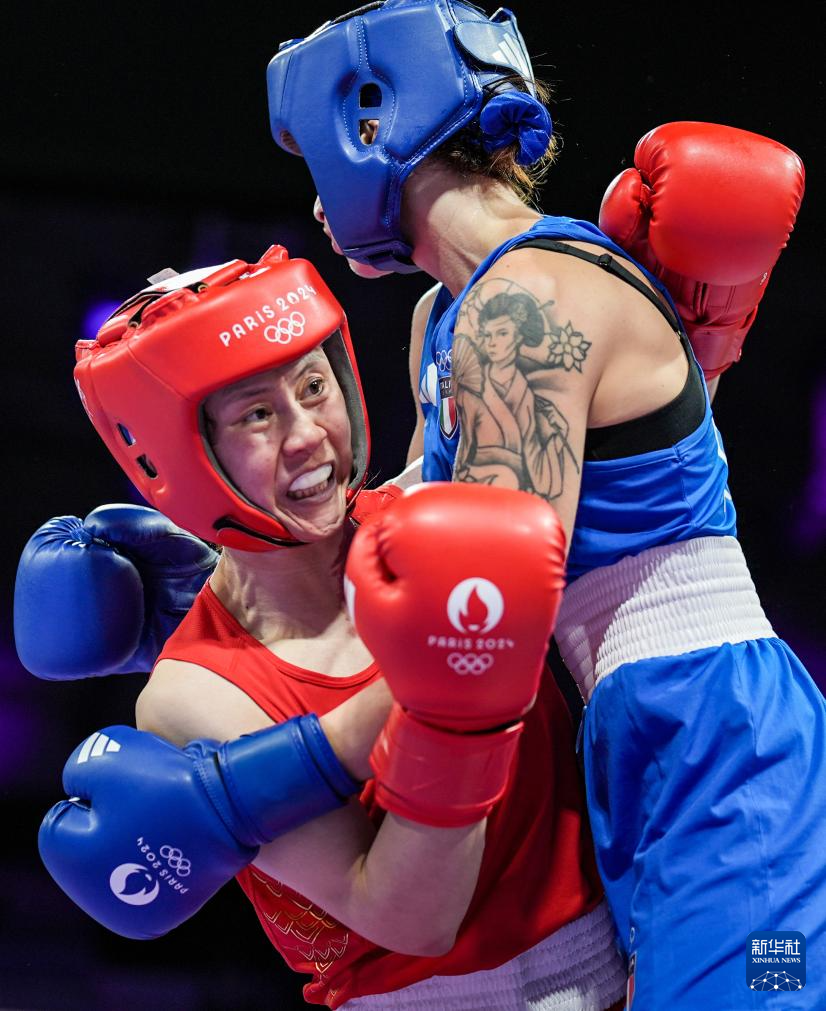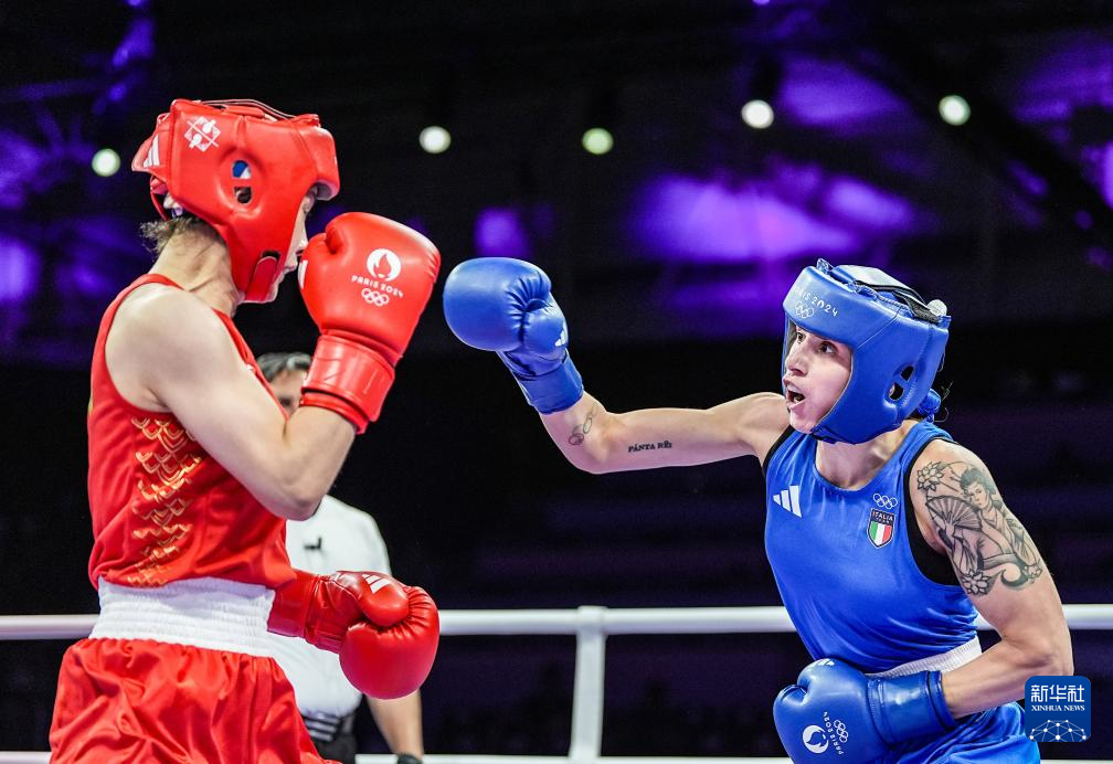 当日,在巴黎奥运会拳击项目女子57公斤级32强赛中,中国选手许紫春战胜意大利选手伊尔玛·泰斯塔。