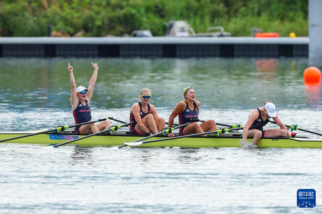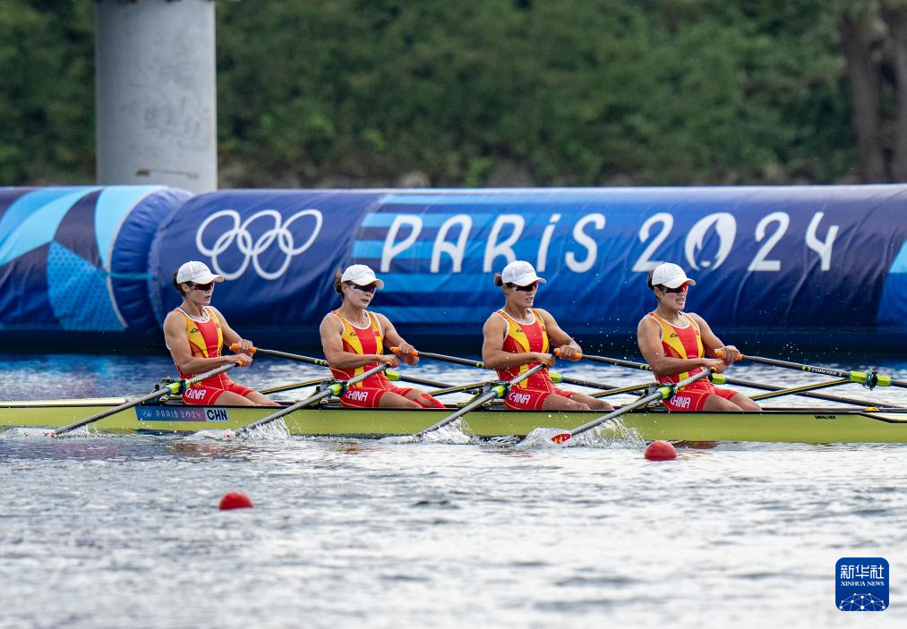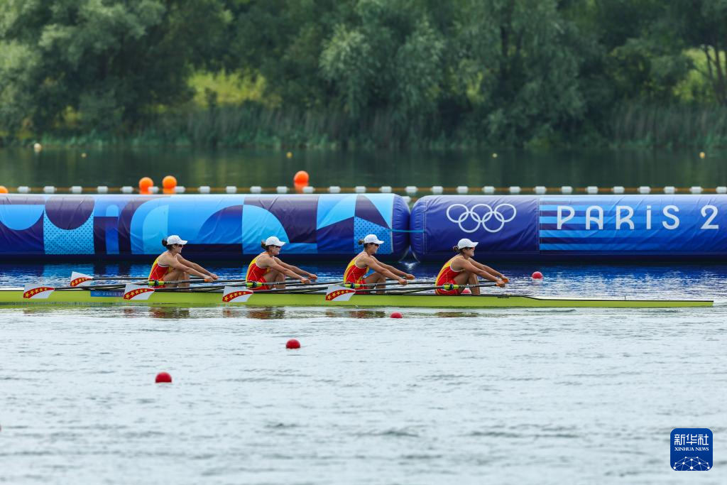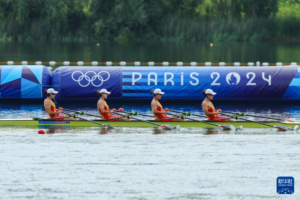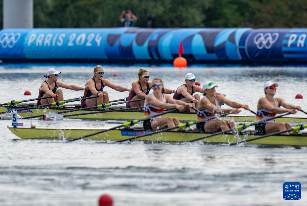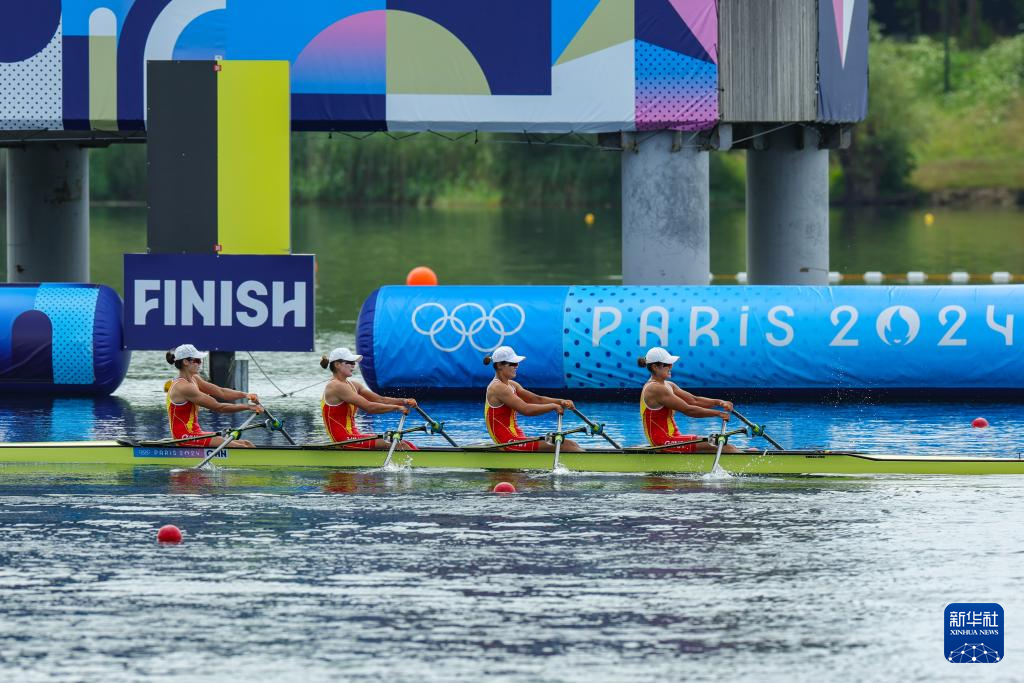 当日,巴黎奥运会赛艇女子四人双桨A组决赛在马恩河畔韦尔水上体育场举行。